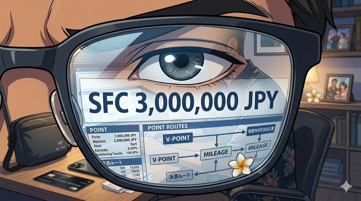 もしこれをANAのSFC(VISA/Master)に紐付けているなら、100万円、200万円、300万円という各チェックポイントで「最大還元」を叩き出しつつ、SFC PLUSの条件をクリアする。