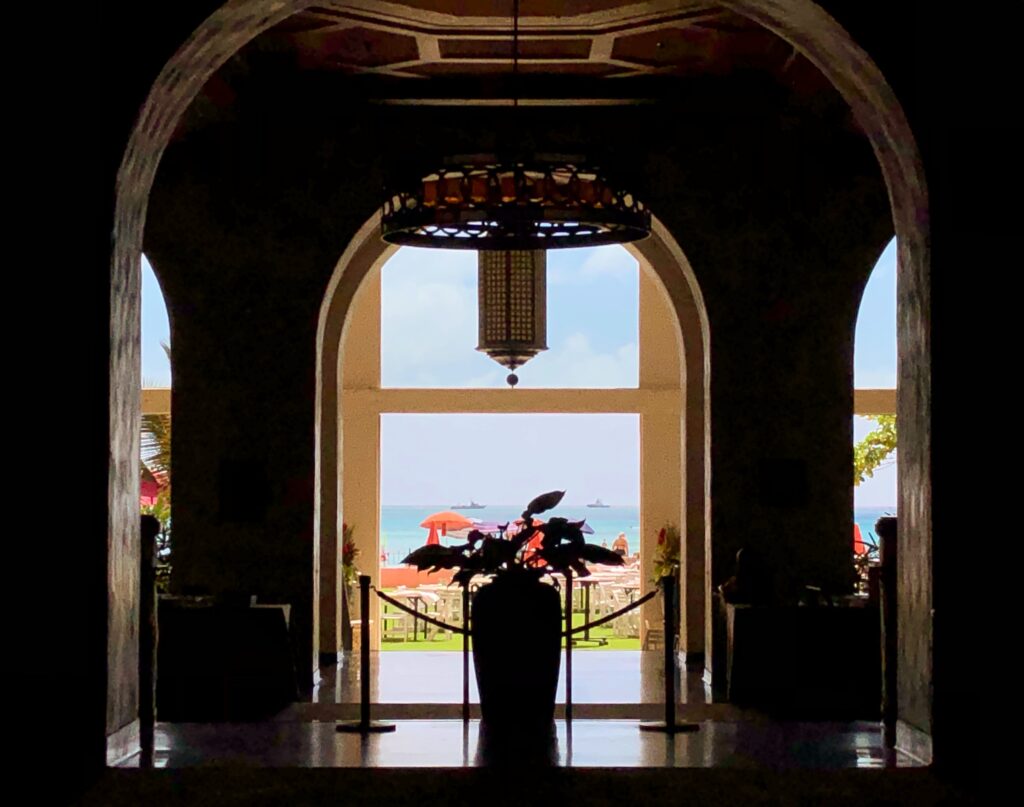 スパニッシュ・ムーリッシュ様式のアーチが描く影さえも、ここでは一つの作品です。