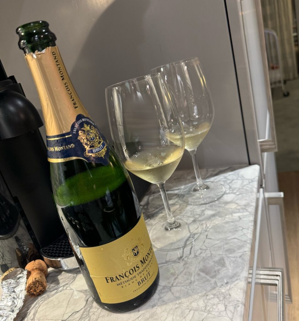 キッチンでロブスターを仕上げ、サービスで届いたボトルシャンパンをキンキンに冷やして抜栓する。