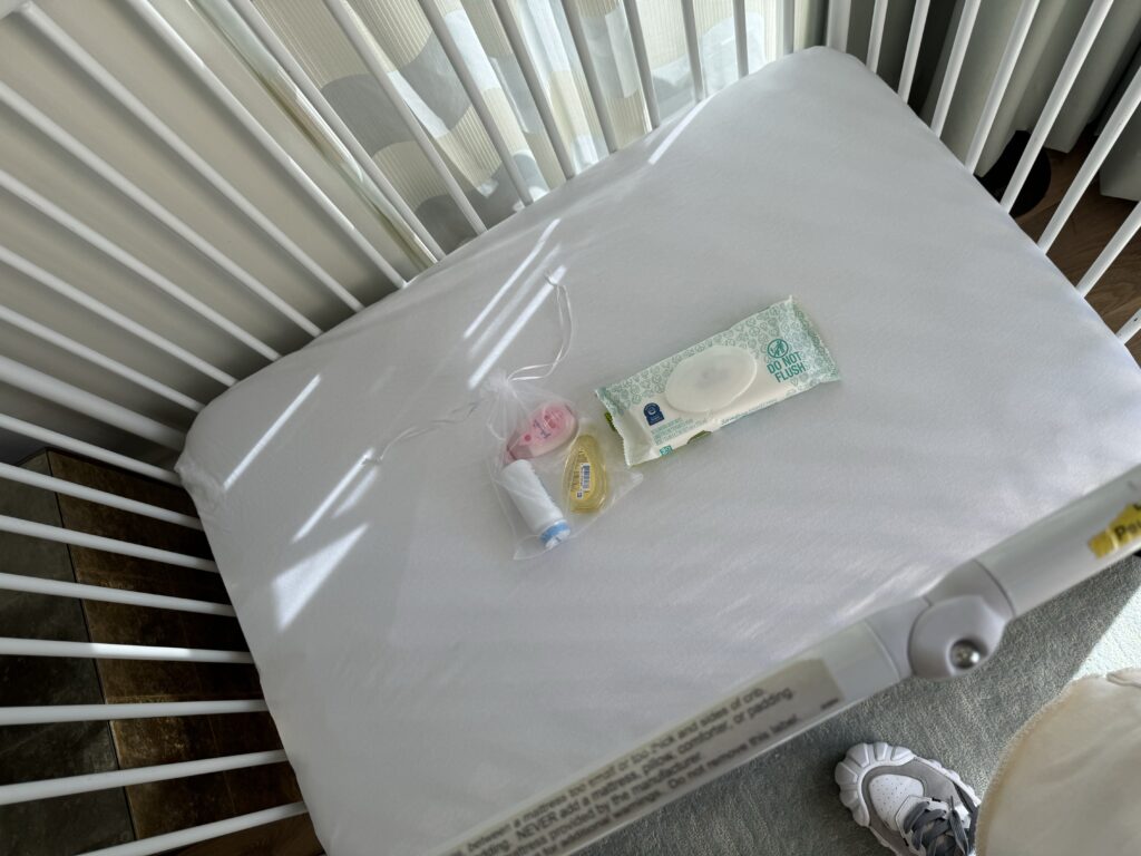 今回は事前にリクエストし、部屋にベビーベッド、おむつ用ゴミ箱、そしてベビーバスを準備してもらいました。